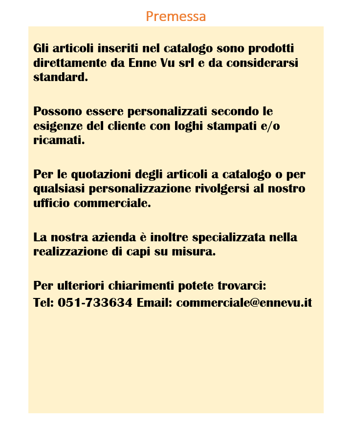Sfogliando il catalogo di vestiti da lavoro, potete apprezzare alcuni dei capi della collezione standard.